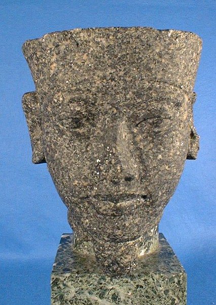 Buste van farao Tutankh-Amen, ook wel als Tutankhamun geschreven (in Boston Museum), de kleinzoon van bovenstaande farao
